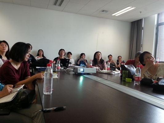 10:00–10:20 陆幼麟老师就统一思想,上好英语写作第一课与其他老师深入交流。
