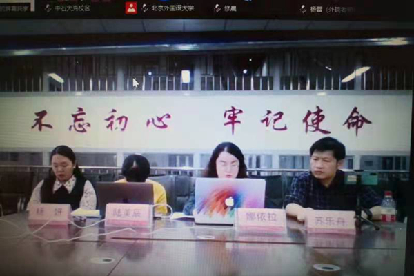 来自北京外国语大学的张东英和王海若老师,新疆大学的丁慧艳和廖玲老师,西藏民族大学徐文和李葆卫老师,中国石油大学(北京)克拉玛依分校的娜伊拉和陆美辰老师,大理大学的黄炎和杨吉梅教师分别作了精彩的说课,其内容涵盖大学英语听、说、读、写、译等多种课型,其中既包括公共英语课,又包括专业内容课,内容涉及首都高校和边疆高校的本科生和硕士生的课程思政实践。