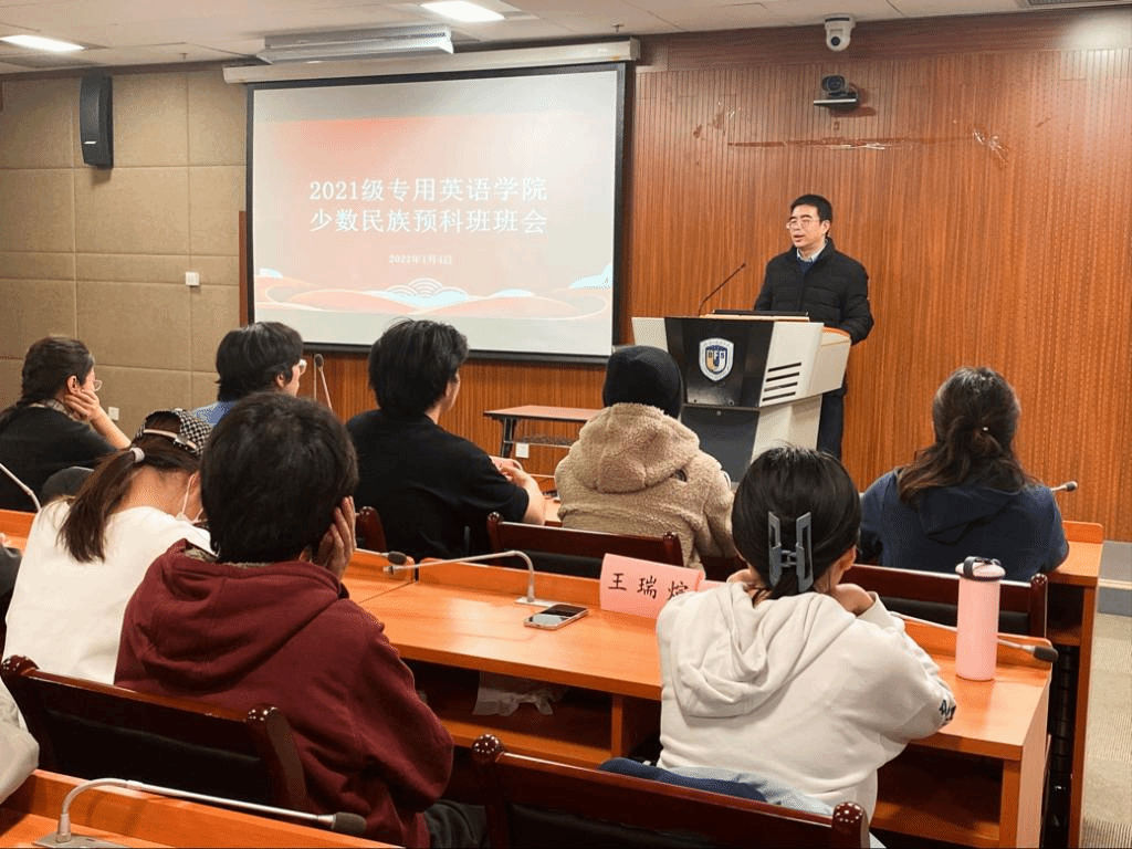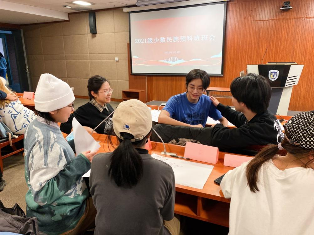 1月4日下午,779cn太阳集团2021级少数民族预科班在西校区国际大厦417教室召开期末总结班会。学院党总支书记蔡鸿,副书记、院长侯俊霞,副院长仵胜奇,副院长蒋岳春,教师代表以及全体预科生一同参加了此次班会。会议由辅导员孟媛主持。