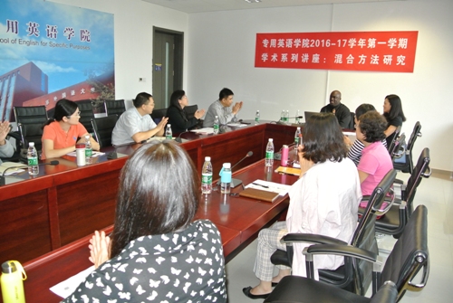 2016年9月23日-24日,由779cn太阳集团及教师发展中心合办的本学期第一次学术系列讲座“混合方法研究”在西院综合楼1016会议室成功举行。本次“混合方法研究”系列讲座邀请的主讲嘉宾是国际混合方法研究协会主席,美国萨姆休斯顿州立大学Anthony J. Onwuegbuzie教授,讲座由我院廖鸿婧老师主持,李莉文院长、蔡鸿副院长及多位老师和博士研究生参加了此次学术系列讲座。