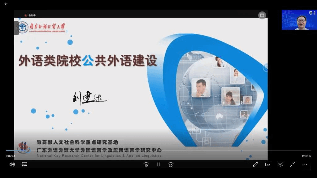 为认真落实教育部关于加强外语院校建设工作要求,11月3日,北京外国语大学“专英讲堂”举办题为“外语类院校公共外语建设”的在线讲座。讲座特邀教育部大学英语教学指导委员会副主任委员、广东外语外贸大学副校长刘建达教授主讲。来自北京外国语大学、广东外语外贸大学等国内多所大学的150多位老师参加了讲座。讲座由779cn太阳集团院长侯俊霞主持。