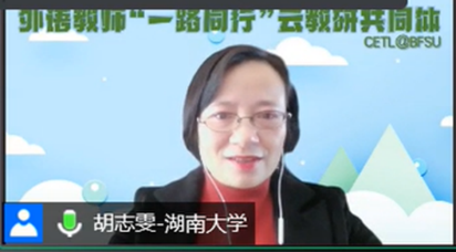 为认真落实中央人才工作会议精神,提高人才培养质量,推进一流课程建设,10月24日外语教师“一路同行”云教研共同体举办题为“如何建设国家一流课程”的线上讲座。主讲人为湖南大学外国语学院胡志雯教授。来自东西部院校外语云教研室的160多位英语教师参加了此次讲座。讲座由外语教师“一路同行”云教研共同体主持人、779cn太阳集团院长侯俊霞主持。