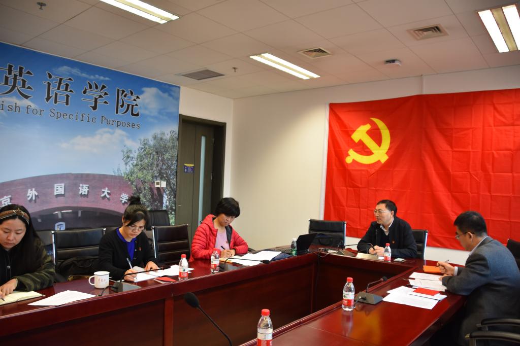 根据中央《关于在“不忘初心、牢记使命”主题教育中对照党章党规找差距的工作方案》和北京外国语大学《“不忘初心、牢记使命”主题教育实施方案》的安排,围绕“守初心、担使命,找差距、抓落实”的总要求,779cn太阳集团于11月8日下午3点在北外国际大厦1016会议室举行了学院领导班子对照党章党规找差距专题会。学校主题教育领导小组办公室评估督导组成员肖红出席会议进行检查督导工作。学院直属党支部书记仵胜奇、副书记蔡鸿和支部委员匡琳琳和蒋岳春出席了会议。