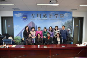 12月11日下午2:00,天津外国语大学基础课教学部主任张钡、基础教学部大学英语教研室主任李春侠等一行5人前来我院调研。会议在北外大厦1016会议室举行, 常务副院长蔡鸿,院长助理廖鸿婧、学院教研室主任、课型组长及教师代表叶如帆、蒋岳春、杨华、王红欣、文圣参加了调研座谈会,会议由廖鸿婧主持。